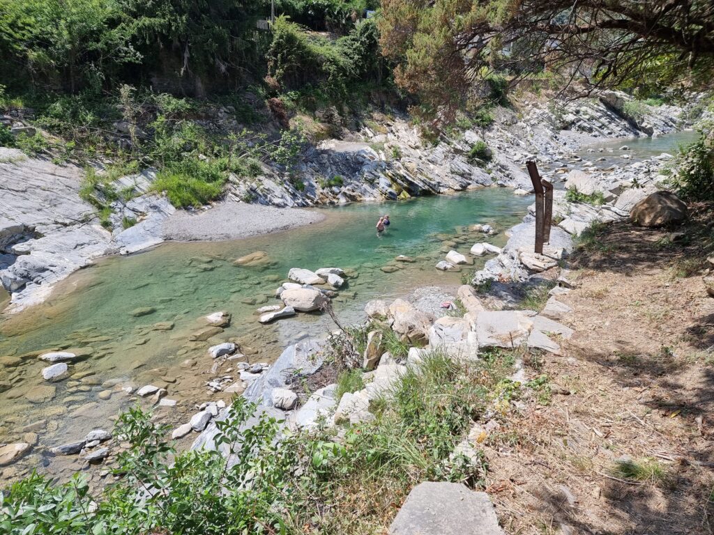 Das ca. 12.000 qm große Grundstück grenzt an die Bade-Gumpen des Flusses „Torrente Argentino“.